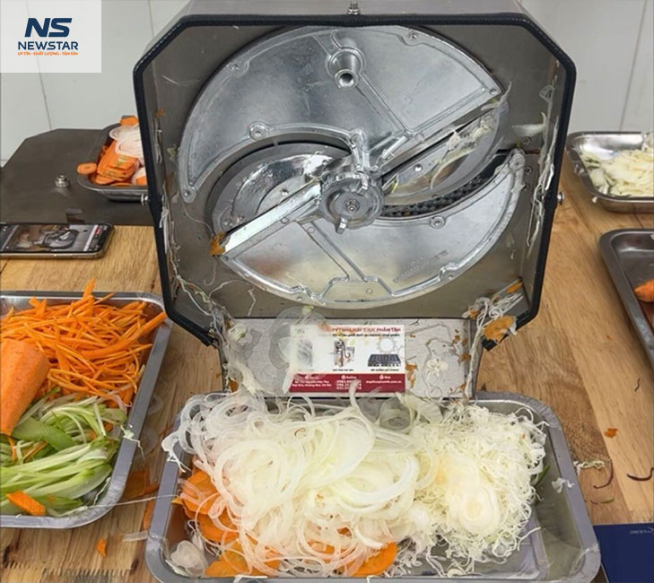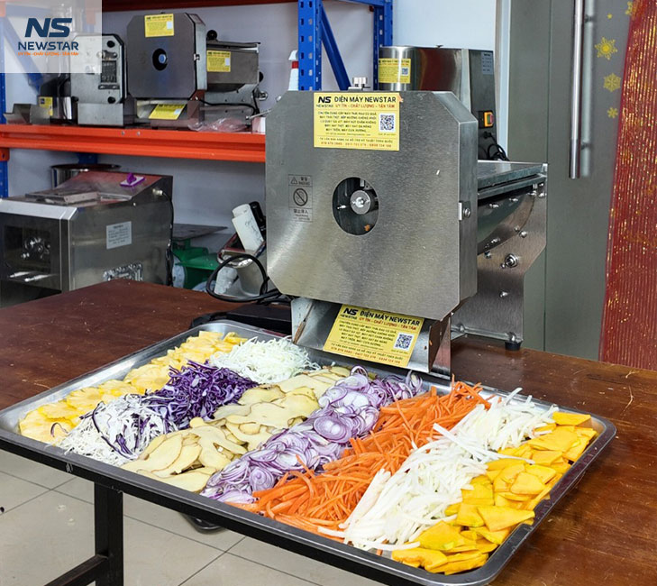 Ngoài ra, việc sử dụng máy còn giúp giảm phụ thuộc vào tay nghề của nhân viên, đảm bảo chất lượng rau cắt luôn đồng nhất dù thay đổi ca làm việc.